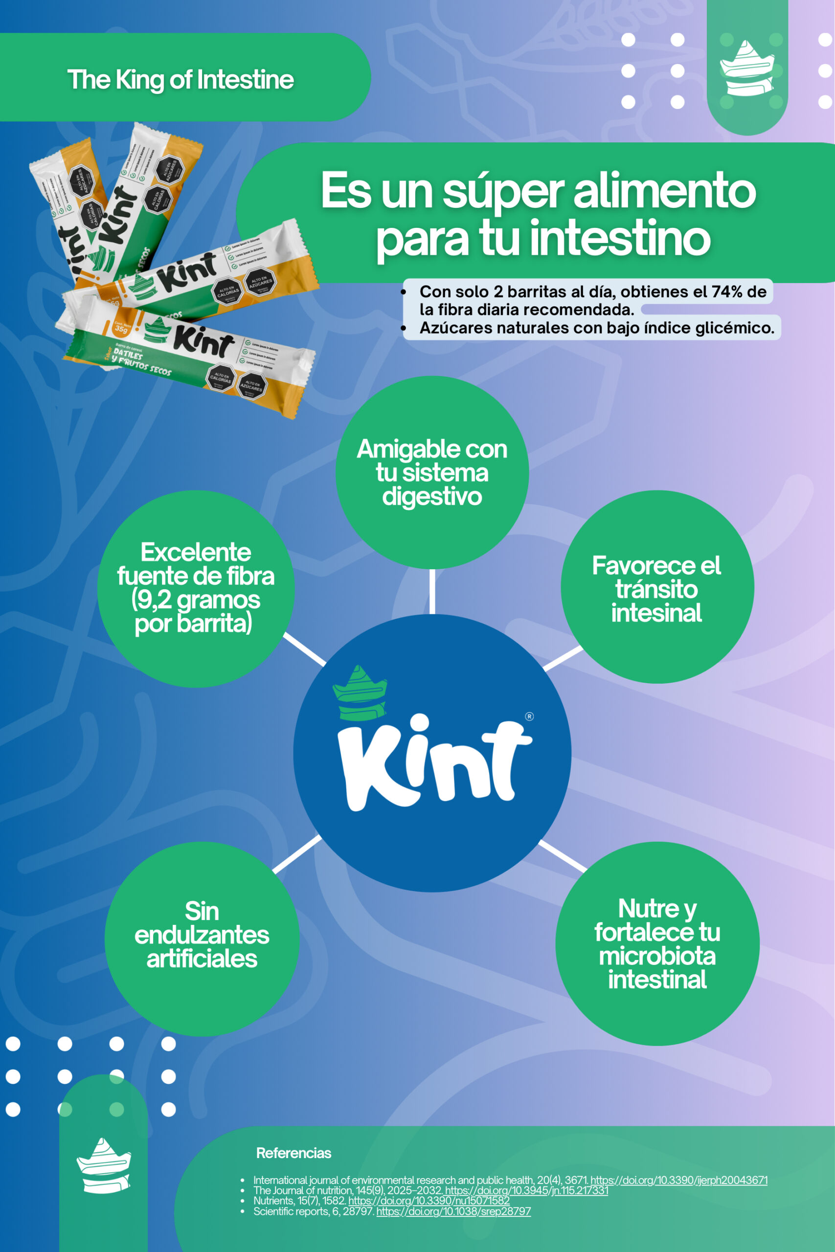 KINT® está diseñado por profesionales de la salud digestiva y nutrición. Los ingredientes fueron seleccionados luego de una revisión científica de sus múltiples beneficios.